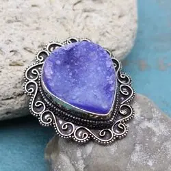 Кольцо из друзы кварца василькового цвета, серебра 925.