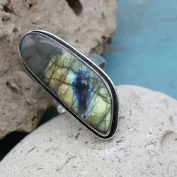 Изящное кольцо из лабрадора, серебра 925 пробы.