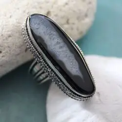 Кольцо с черным агатом