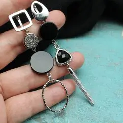 Асимметричные серьги из черного агата, граненого оникса, цирконов, друзы, 925, родирование.