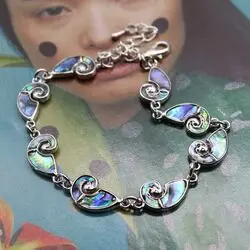 Браслет из натурального перламутра гелиотиса в виде аммонита, посеребренного родированного сплава.