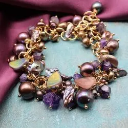 Очень красивый браслет из природных самоцветов - черного жемчуга, аметиста! Невозможно не обратить внимание на это потрясающее украшение!
