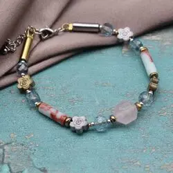 Браслет из натурального розового кварца (Шри-Ланка), голубого кварца, варисцита, позолоченной и посеребренной фурнитуры.