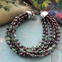 Браслет из граненого рубинового циозита, граната, посеребренной фурнитуры (Чехия).