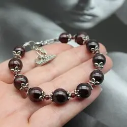 Браслет из натурального граненого граната (Шри-ланка), крупного граната, посеребренной черненной фурнитуры.