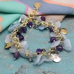 Браслет из натурального граненого аметиста, аквамарина, позолоченной фурнитуры 24К.