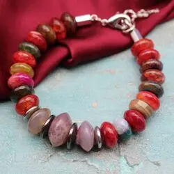 Браслет из цветного индийского агата, посеребренной фурнитуры.