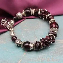 Браслет из натурального граната, богемского стекла, балийского серебра с чернением.