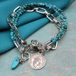 Сет браслетов из самородков натуральной бирюзы (Перу), посеребренной цепи.