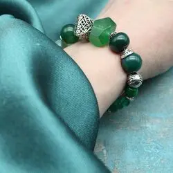 Браслет из зеленого агата, хризоколлы, хризопраза, посеребренных бусин.