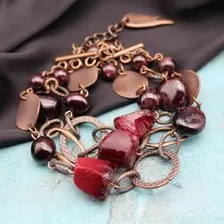 Браслет из натурального граната, необработанного гранатового кварца, меди.