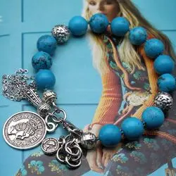 Браслет из бирюзы (стабилизированной), посеребренной черненной фурнитуры.