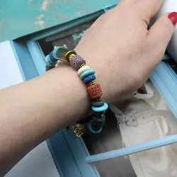 Браслет из голубой бирюзы (стабилизированной), разноцветной лавы (вулканического туфа), богемского стекла, латуни.