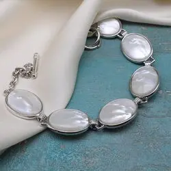Браслет из натурального белого перламутра, посеребренного родированного сплава.