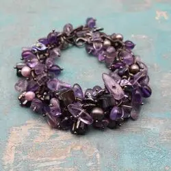 Браслет из натурального аметиста, перламутра, жемчуга.