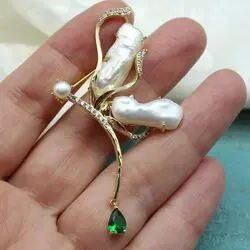 Невероятно элегантная, изысканная модель броши с натуральным барочным жемчугом!