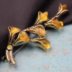 Брошь в виде букетика каллов из бронзы и натурального балтийского (г.Калининград) янтаря.
