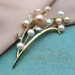 Невероятно элегантная, изысканная модель броши с натуральным розовым и белым жемчугом!