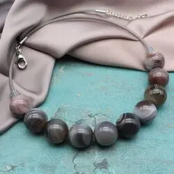 Ожерелье из ботсванского агата, каучука, посеребренной фурнитуры.
