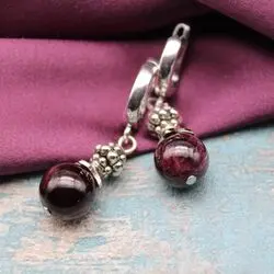 Эффектные серьги в восточном стиле из граната, посеребрение 925 пробы.