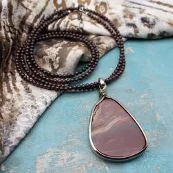 Колье из граната с подвеской из яшмы, посеребрение 925 пробы.