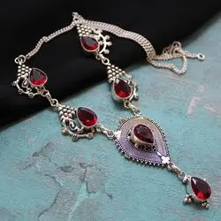 Колье из кварца гранатового цвета, посеребрение 925 пробы.