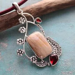 Подвеска из яшмы, граната, посеребрение 925 пробы.
