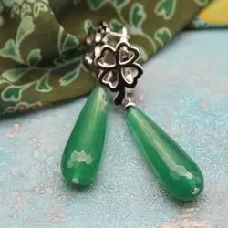 Серьги из хризопраза, посеребрение 925 пробы, родирование.