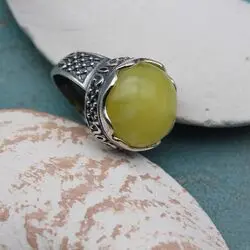 Кольцо из желтого балтийского янтаря (г.Калининград), мельхиора.