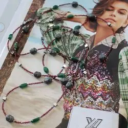 Колье из сотуар из натурального зеленого авантюрина, граненого граната ювелирного качества (Шри-Ланка), резного гематита.