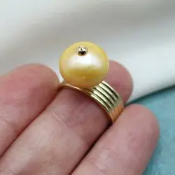 Кольцо из позолоченной латуни 24К, барочного жемчуга.