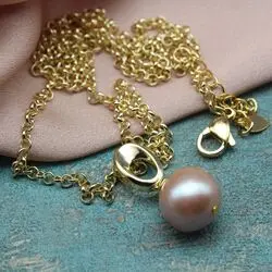 Колье из крупной природной жемчужины розового оттенка латунной фурнитуры с позолотой 18К.