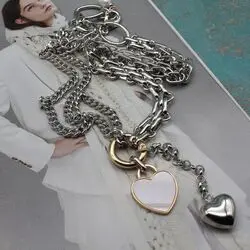 Колье из стильных цепей необычного дизайна посеребренной и позолоченной с родированным покрытием (р-ка Корея) и декоративной застежки с кулонами в виде сердечек!
