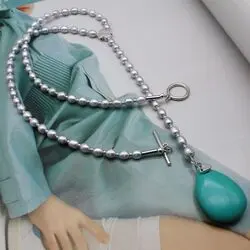 Колье удлиненное из серебристого речного жемчуга, бирюзы (стабилизированной), серебра 925.