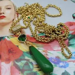 Колье из яблочного хризопраза, латунной фурнитуры с позолотой 18К, цирконами.