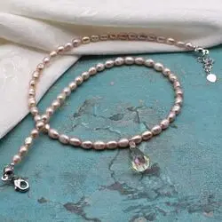 Размер жемчуга 4*6 мм, размер подвески с кристаллом 10*18 мм.