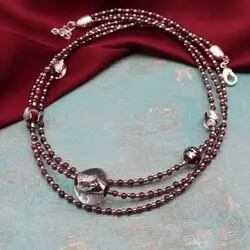 Многорядное колье из граната, венецианского стекла ручной работы с серебряной поталью, посеребренной родированной фурнитуры.