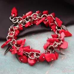 Браслет из натурального красного коралла, богемского стекла в виде стрел и гранатовых капелек, черненной фурнитуры.