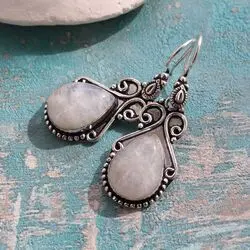 Серьги из полупрозрачного лунного камня, посеребрение 925 пробы.