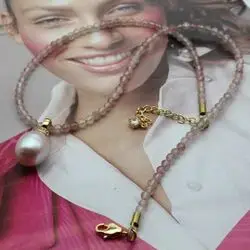 Ожерелье из розового кварца, крупной розовой жемчужины.