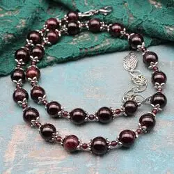 Ожерелье из натурального граненого граната (Шри-ланка), крупного граната, посеребренной черненной фурнитуры.