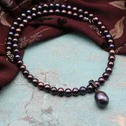 Элегантное, утонченное украшение из великолепного природного жемчуга черно-лилового оттенка!