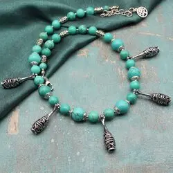 Ожерелье из зеленой бирюзы (стабилизированной), посеребренных деталей.