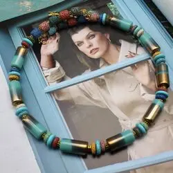 Ожерелье из голубой бирюзы (стабилизированной), разноцветной лавы (вулканического туфа), богемского стекла, латуни.