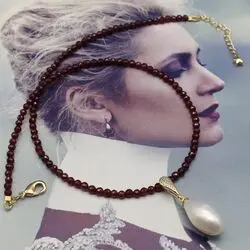 Ожерелье из натурального жемчуга, натурального альмадина (граната), позолоченной фурнитуры.