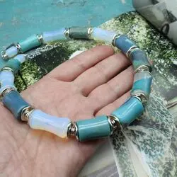 Размер размер бусин агата 14*20 мм, опалита 12*30 мм.