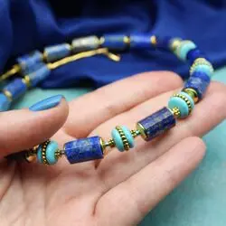 Ожерелье из лазурита (Афганистан), голубой бирюзы (стабилизированной), позолоченной фурнитуры.