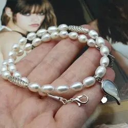 Ожерелье из белоснежного речного жемчуга, посеребренной родированной фурнитуры, инкрустированной белым перламутром.