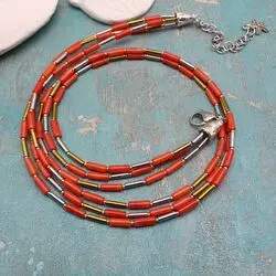 Ожерелье из натурального коралла, гематита, позолоченной фурнитуры из латуни (Чехия).
