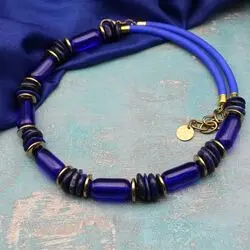 Ожерелье из лазурита (Афганистан), богемского стекла, синего каучука, позолоченной фурнитуры.